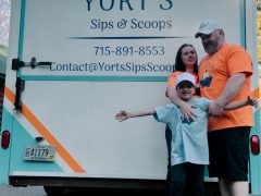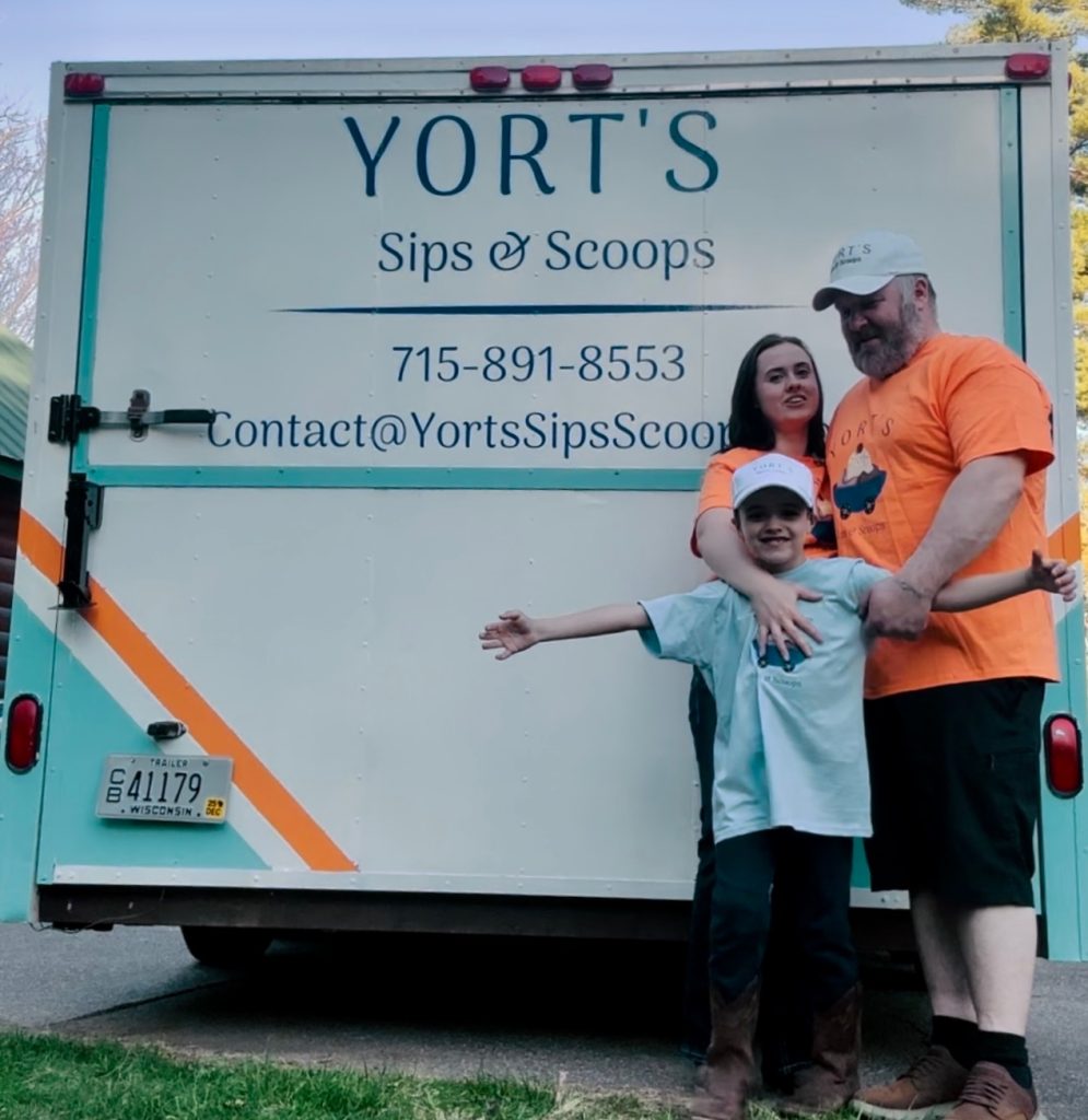 Yort’s Sips & Scoops is a family-owned mobile ice cream trailer proudly serving Eagle River, WI and beyond. We offer rich Wisconsin-made soft serve custard, hand-scooped ice cream, cold drinks, and more. Find us at local community events or book us for weddings, private parties, corporate gatherings, and other sweet celebrations — we’ll bring the treats and fun to you!
